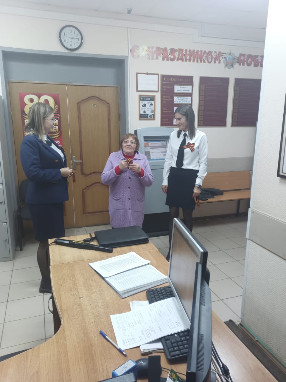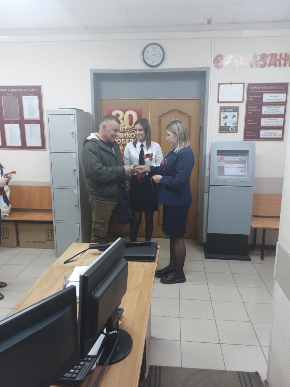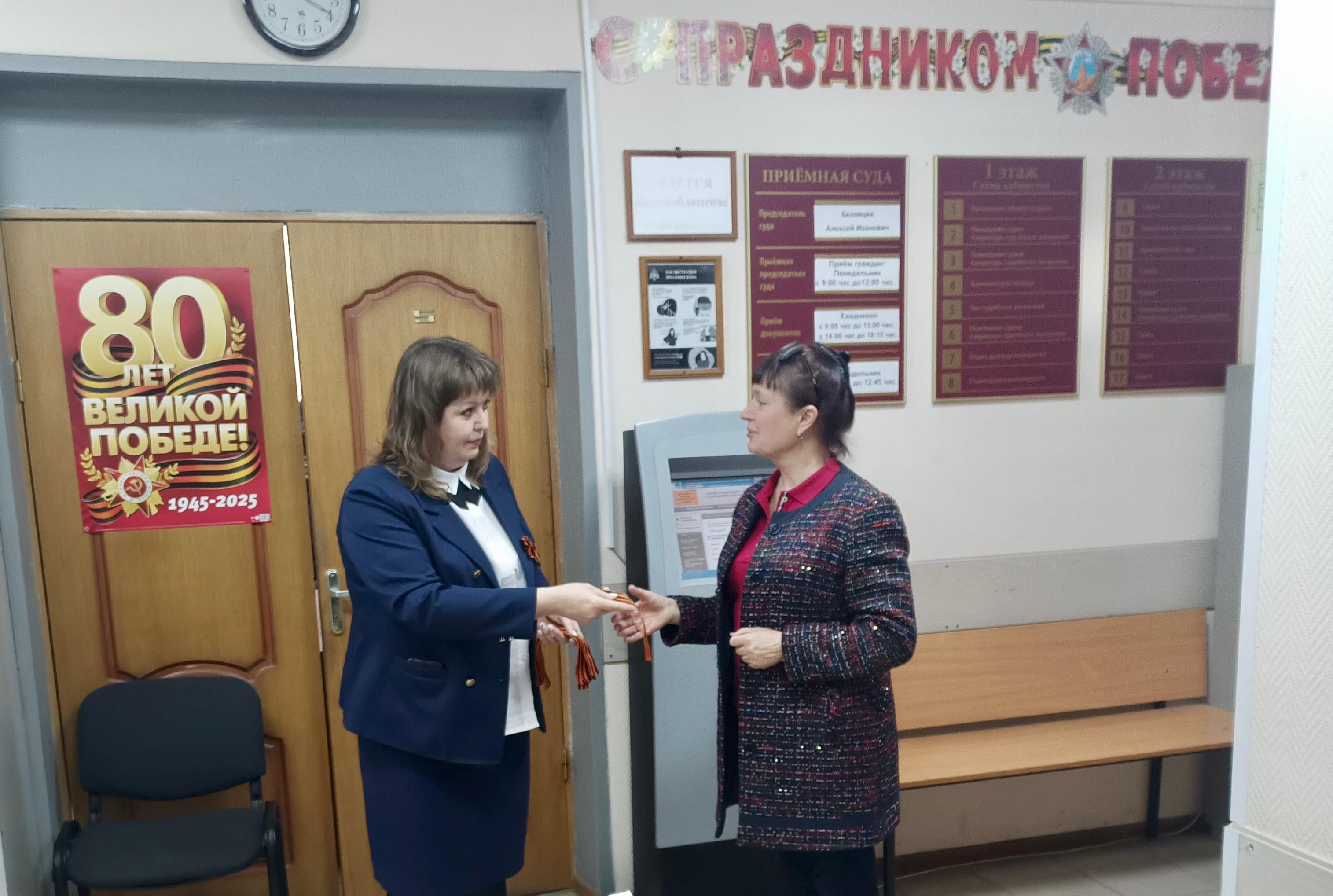 Коллектив Малоярославецкого районного суда Калужской области присоединился к Всероссийской акции "Георгиевская ленточка". Сотрудники аппарата суда вручали посетителям Георгиевские ленты. Ношение Георгиевской ленточки символизирует дань уважения Всем, кто сражался за Родину, и знак того, что новое поколение помнит и гордится их подвигом. ![]() |